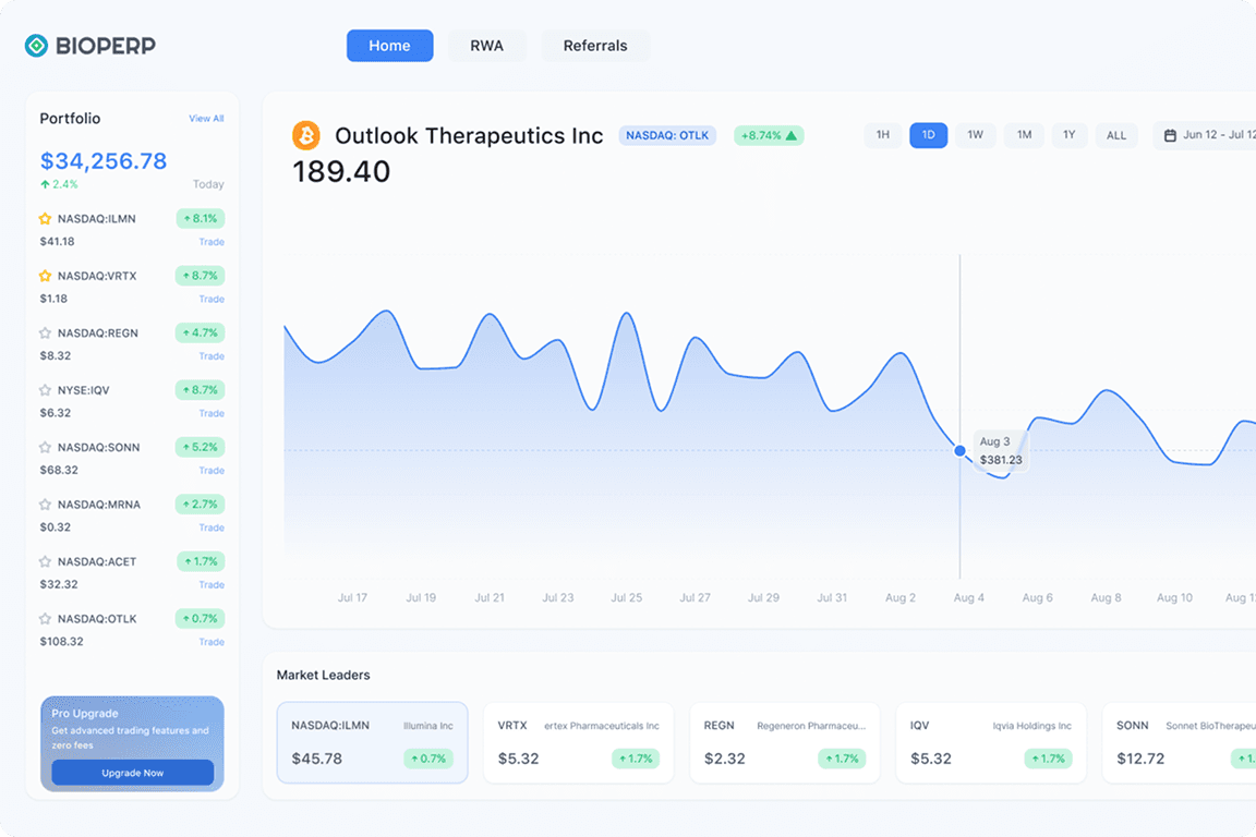 Trade fractional biotech penny stocks on-chain. No middlemen. Instant liquidity.